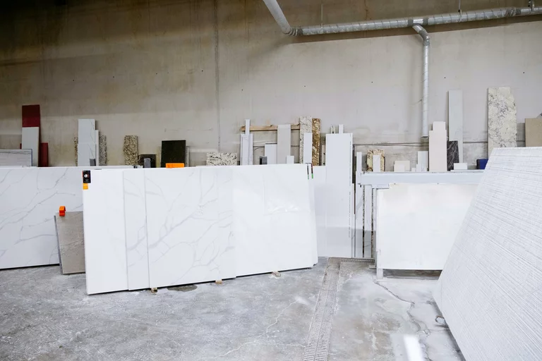Fabrication is performed in a controlled environment using modern equipment to achieve accurate cuts and polished finishes.
